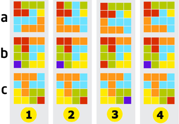 Évi szívesen kézműveskedik, varrni is nagyon szeret. Négy különböző mintájú anyagból volt neki egy-egy 12 cm · 12 cm-es darabkája, viszont nem volt ollója, csak tűje és cérnája.