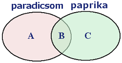 Összegyűjtöttük a paradicsom és a paprika néhány tulajdonságát. Helyezd el a halmazábra megfelelő helyére a tulajdonságokat!