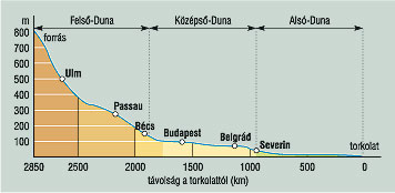 A grafikon a Duna esését szemlélteti forrásától a torkolatáig. Nézd meg figyelmesen az ábrát, majd döntsd el az állításokról, hogy igazak vagy hamisak!