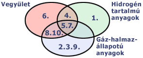 Különböző anyagokat bizonyos tulajdonságaik alapján rendszereztünk, majd erről készítettünk egy halmazábrát. A rendszerezéskor azonban egyes anyagok sorszámát a halmazábra nem megfelelő részébe írtuk.