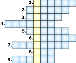 1. A levágott folyókanyarulatokból jön létre.2. Növényzettel ellepett sekély állóvíz.3. Hazánk délnyugati határfolyója.4. Süllyedéssel keletkezett tavunk.5. Felszínre törő víz a vízzáró réteg és a felszín metszéspontjában.6. A szántóföldet veszélyeztető felszíni víz.7. Vizeink mellett kialakult mesterség.8. Árvizeket megakadályozó építmény.9. A Tisza utolsó jobb parti mellékfolyója.