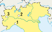 Olaszország ma a fejlett országok közé tartozik. Az ország modern ipara főként az északi ipari háromszöget alkotó Milánó–Torinó–Genova városok területére koncentrálódik. Tanulmányozd a térképet! Mely városokat jelölik a számok, és milyen ágazatok jellemzőek rájuk? Párosíts!