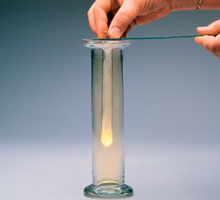 Anyagok: oxigén, hidrogén, szén-dioxid, hipermangán, jódKísérletek: – Az anyagot tartalmazó kémcsőbe belehelyezve a parázsló gyújtópálcát, az lángra lobbant. – Meszes vízbe vezetve, az zavarossá vált. – Éghető.– Melegítve lila színű gőzök megjelenését tapasztaltuk.