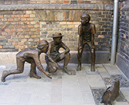 „– És az ujja mintha egy kicsit rövid volna.– Nem gondolom.– De nézze csak jól meg. Minden kabátnak rövidre csinálja az ujját, ez a maga baja!„Dehogy ez az én bajom!” – gondolta a szabó, és megjegyezte a krétával a kabát ujját.Benn pedig nőttön-nőtt a lárma.” (kép: kozterkep.hu)